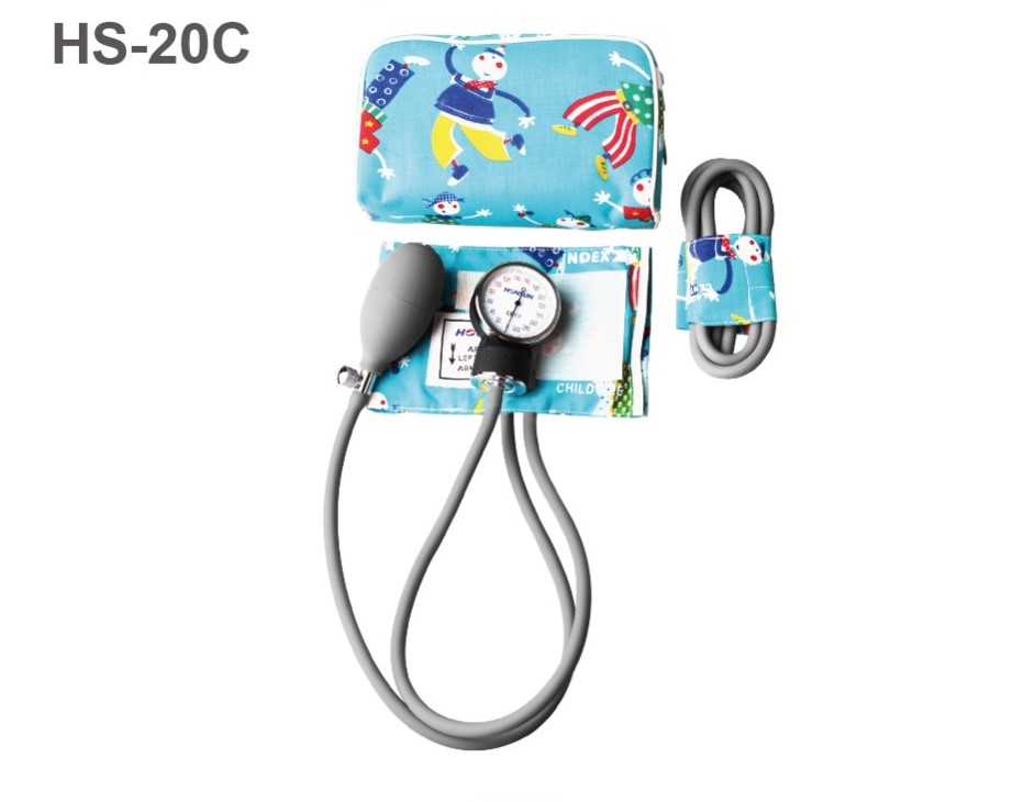 Дитячий циферблатний тонометр HS-20C. Легко читабельний годинник у сірому металевому корпусі. Поставляється з трьома кольоровими манжетами різних розмірів для новонароджених, немовлят і дітей молодшого віку. Чохол із сірого металу з грушеподібним клапаном та інструкція з експлуатації польською мовою.