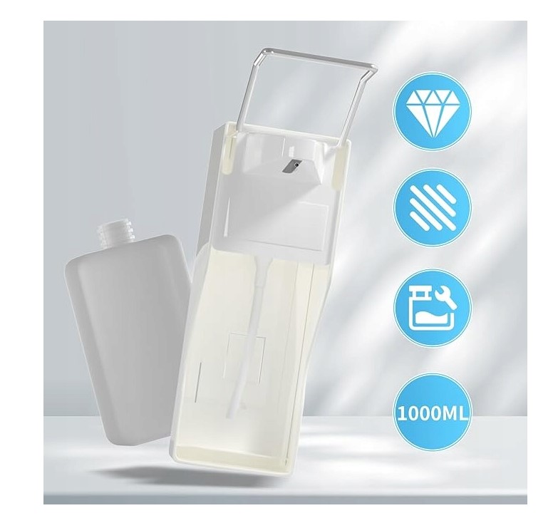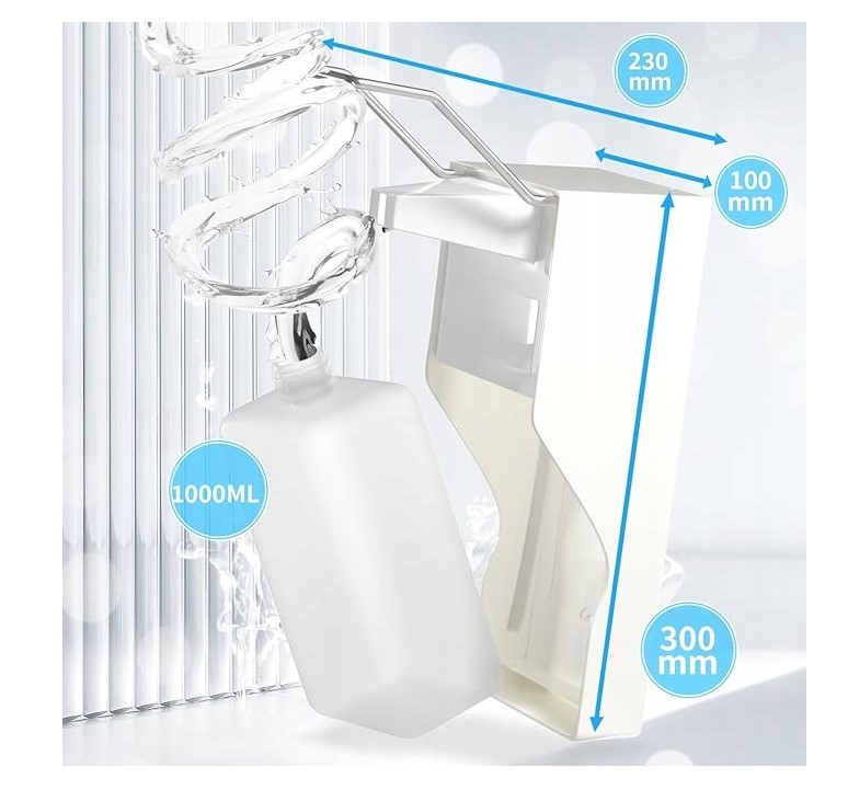 Міцний матеріал: основний корпус дозатора для мила виготовлений з високоякісного ABS, з металевим важелем, білого кольору і з великою ємністю 1000 мл для задоволення щоденних потреб (розміри довжина, ширина і висота: 10 х 23 х 30 см)