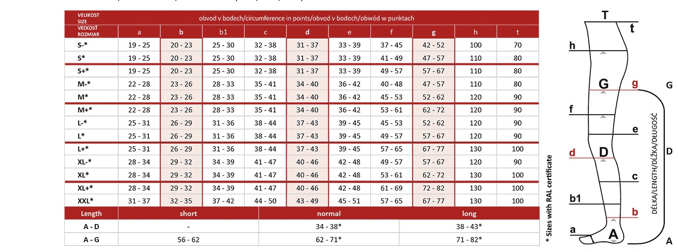 Правильний розмір впливає на правильну функцію гольфів. Вимірювання бажано проводити вранці, оскільки протягом дня кінцівки набрякають і зроблені виміри будуть неправильними.