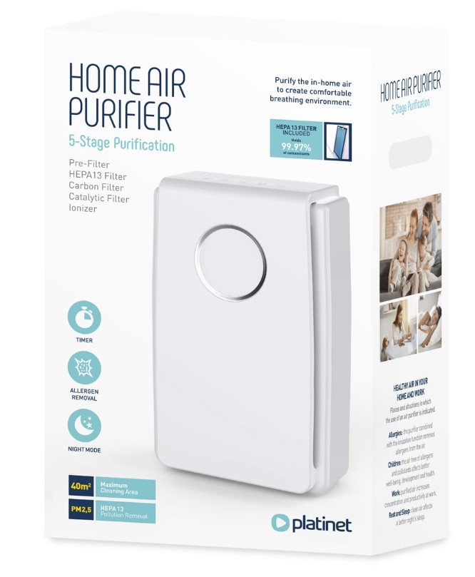 Проблема смогу зачіпає нас щодня, тому варто подбати про забезпечення здорового повітря, вільного від забруднювачів, вдома і на роботі. Ефективний очищувач повітря PLATINET PAPHEPA13 затримує 99,97% забруднювачів, що надходять ззовні, а також ті, що утворюються вдома.