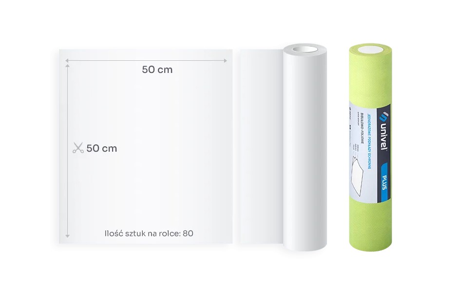 Одноразові захисні прокладки Univel Plus тришарові (тканина, промокальний папір, плівка). Верхня сторона виготовлена з двошарового гігієнічного цигаркового паперу (100% целюлоза), на нижній стороні – міцний шар поліетиленової плівки. Така комбінація робить прокладку водонепроникною та неслизькою. Прокладки Univel Plus м’які, легкі, функціональні та універсальні. Вони водонепроникні та мають високу міцність на розрив.
