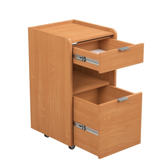 Приліжкова тумба LIBRA містить усе необхідне для щоденного використання як у будинках престарілих, так і в лікарнях. Вона має стійку конструкцію та компактні розміри, забезпечуючи при цьому максимальний простір для зберігання. Підняті над стільницею бокові стінки тумби захищають предмети, покладені на неї, від зісковзування. Інтегрована висувна стільниця, розташована трохи нижче верху, дозволяє значно збільшити простір для зберігання. Зберігання розділене на дві шухляди, верхню зручну шухляду та нижню шухляду для контейнерів.