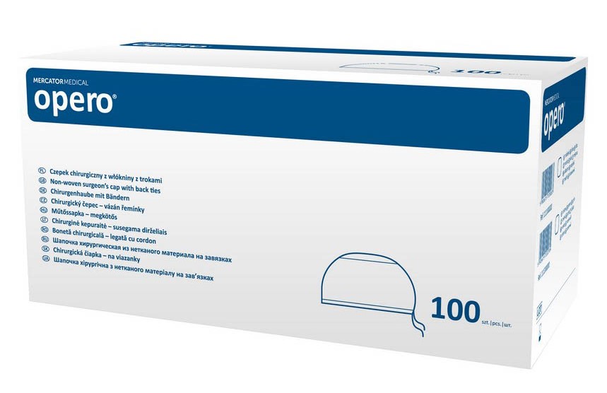 Нестерильна хірургічна шапочка у формі фуляра, зав’язується на ремінці. Зручна у використанні, запобігає передачі бактерій і забруднень. Упакована в картонну упаковку по 100 штук.