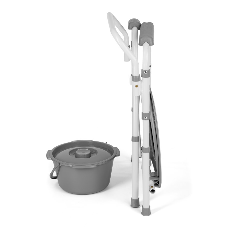 Складаний стільчик для унітазу з швидкороз’ємними з’єднаннями – це допоміжний пристрій, який полегшує користувачеві виконання фізіологічних функцій. Рекомендується людям, які мають проблеми з самостійним пересуванням, з дисфункціями та обмеженою рухливістю, а також тим, хто втратив здатність самостійно сидіти і вставати. Крісло має функцію туалету завдяки наявності під сидінням гігієнічного лотка. Це полегшує фізіологічні потреби та догляд за собою.