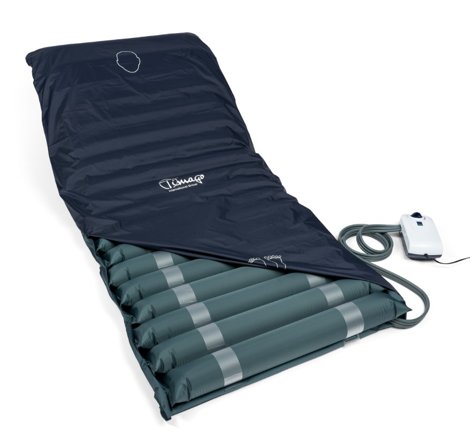 Надміцний трипотоковий трубчастий протипролежневий матрац з міцного ПВХ зі структурою поперечних камер. Ці камери циклічно, по черзі, наповнюються повітрям за допомогою насоса, що подає повітря. Цей комплект, постійно змінюючи точки опори лежачої людини, мінімізує тиск на ділянки тіла, найбільш схильні до пролежнів, і дає можливість уникнути або зменшити їх появу.