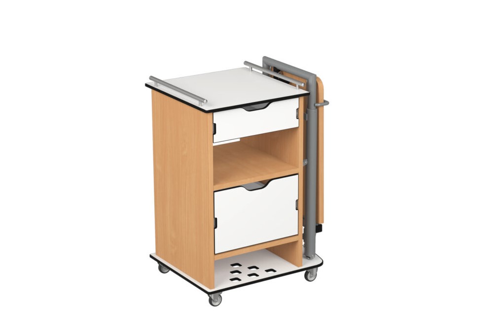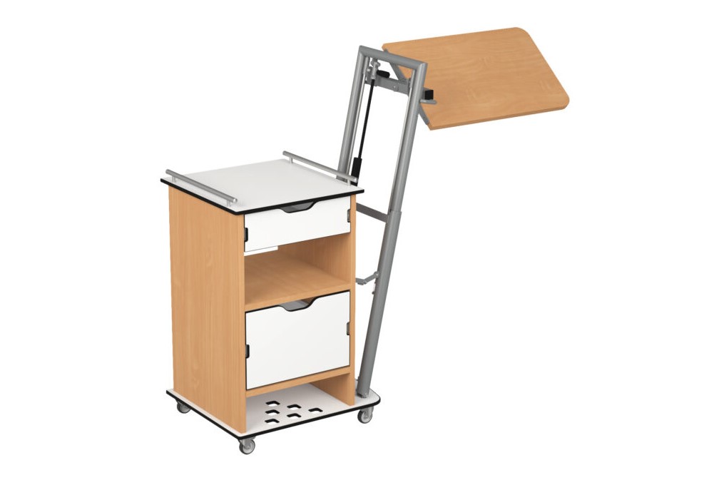 Шафка VIRGO Lux/M призначена насамперед для використання в лікарнях. Завдяки низці рішень вона є високофункціональною і практичною, а також додатково адаптованою для використання в складних умовах лікарень. Характеризується компактним та ергономічним дизайном. Мобільність забезпечується використанням подвійних коліщаток, а для комфорту пацієнта шафа оснащена рухомою стільницею з регулюванням висоти і двостороннім нахилом. Регулювання висоти стільниці відбувається плавно і безступінчато завдяки використанню газової пружини.